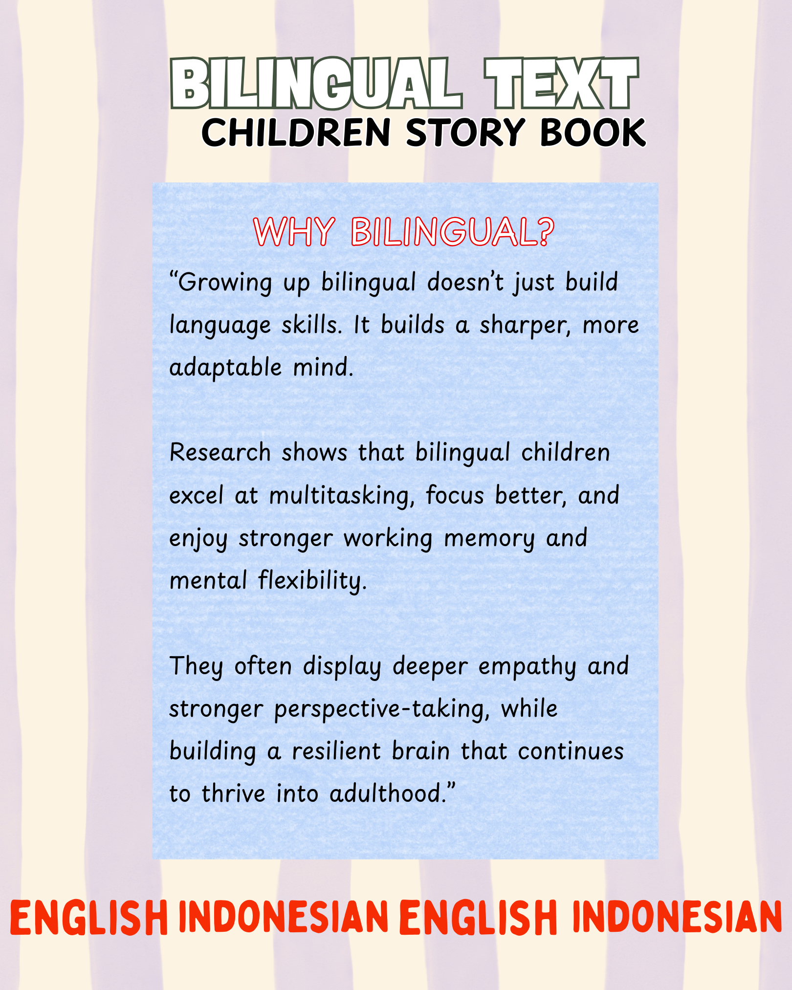 Written in both English and Indonesian on each page, this book is ideal for introducing toddlers to two languages simultaneously, providing timeless storytelling that ignites imagination and laughter with every turn. With its modern appeal, this is a keepsake you'll cherish and revisit time and again.