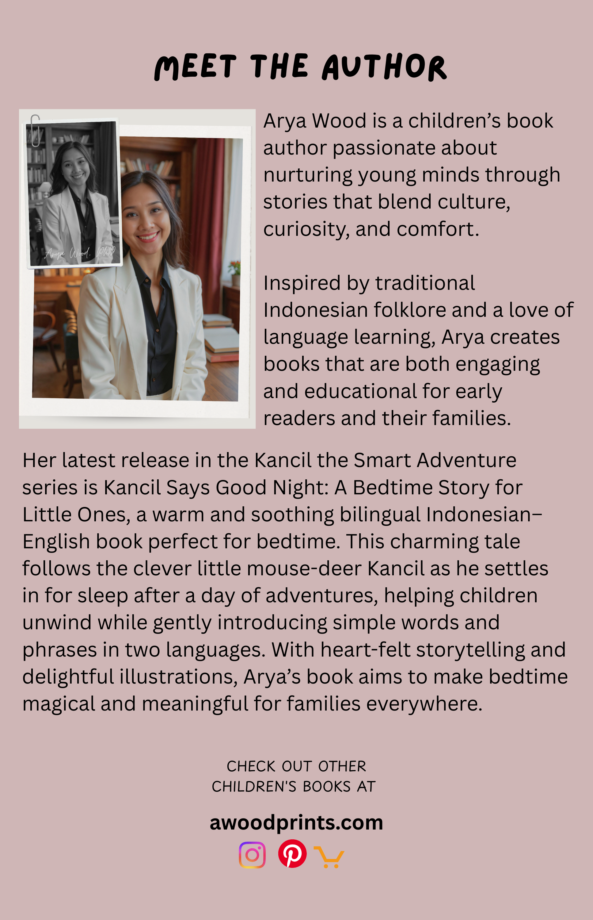 This gentle bilingual Indonesian–English bedtime story follows Kancil as he winds down after a day of fun and learning. With simple, soothing language and warm illustrations, the story helps little ones prepare for sleep while introducing basic vocabulary in both languages.